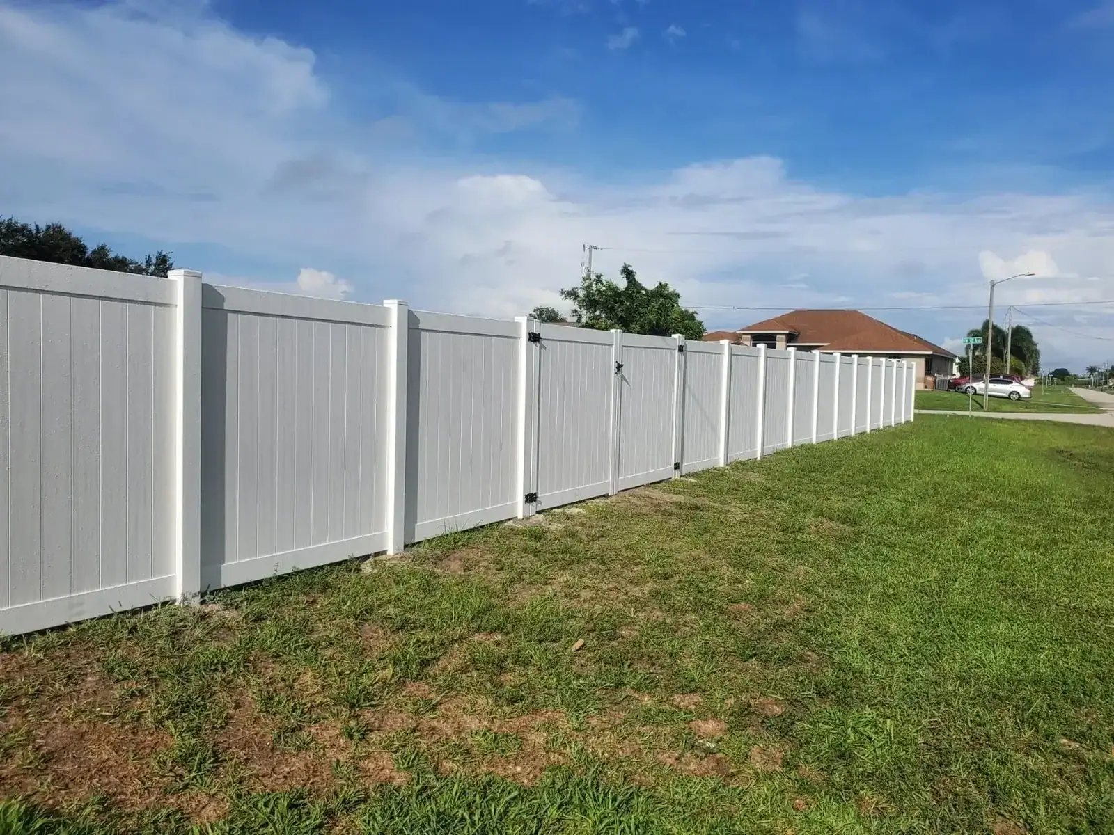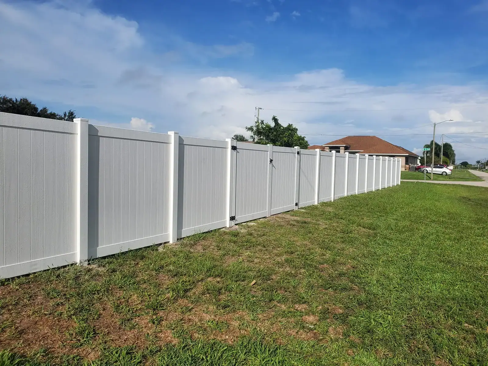 Florida Fence Pros installs a wide range of fence systems tailored to the needs of homeowners, businesses, HOAs, and property managers. Our services include vinyl privacy fences, white vinyl fencing, louvered vinyl fencing, black aluminum fencing, ornamental aluminum fences, galvanized chain link fencing, black vinyl-coated chain link fences, wood privacy fences, shadowbox fencing, horizontal wood fencing, ranch rail fencing, agricultural fencing, pool-code-compliant fencing, commercial security fencing, and fully customized driveway gates and access systems. Whether you need a backyard privacy fence in Cape Coral, a perimeter security fence for a commercial facility, or a large-scale industrial installation, our team has the equipment, experience, and manpower to execute the project properly.